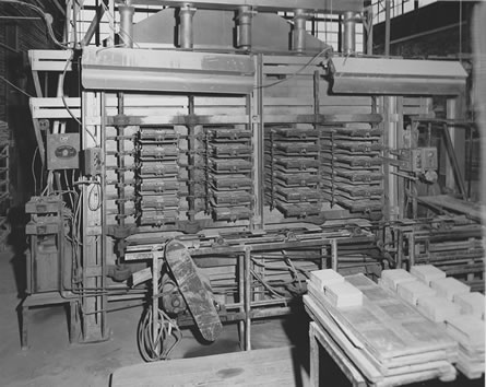 ![]() 6. Front of press showing conveyor to remove tile from press. |
