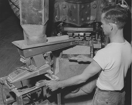 ![]() 15. Tiles are inspected and placed in proper location to be automatically moved through the kiln. |